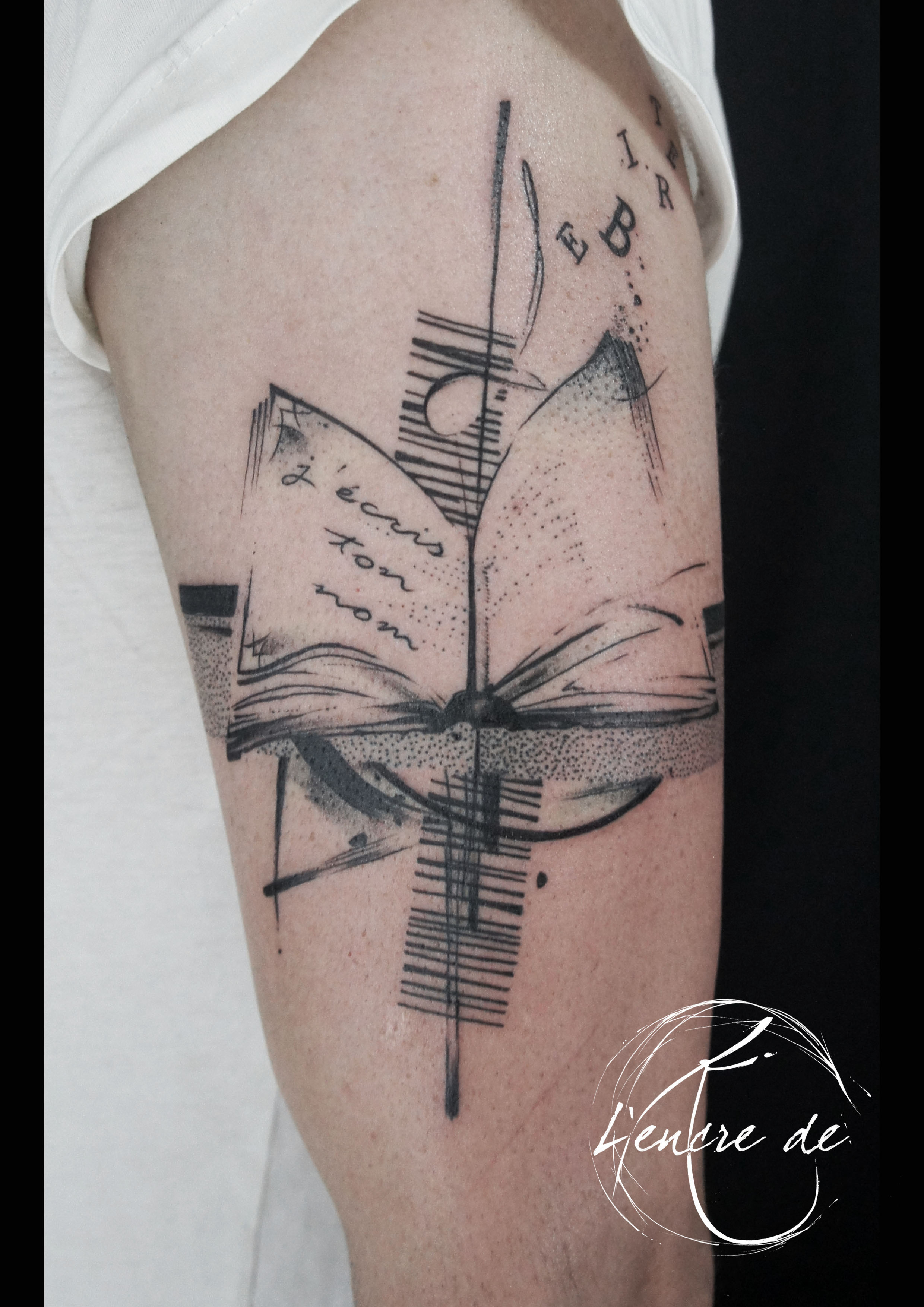 tatouage livre ouvert graphique masculin